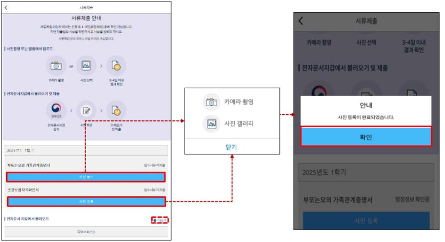 - [어플 메인화면] → [서류제출] → [사진등록]에서 업로드