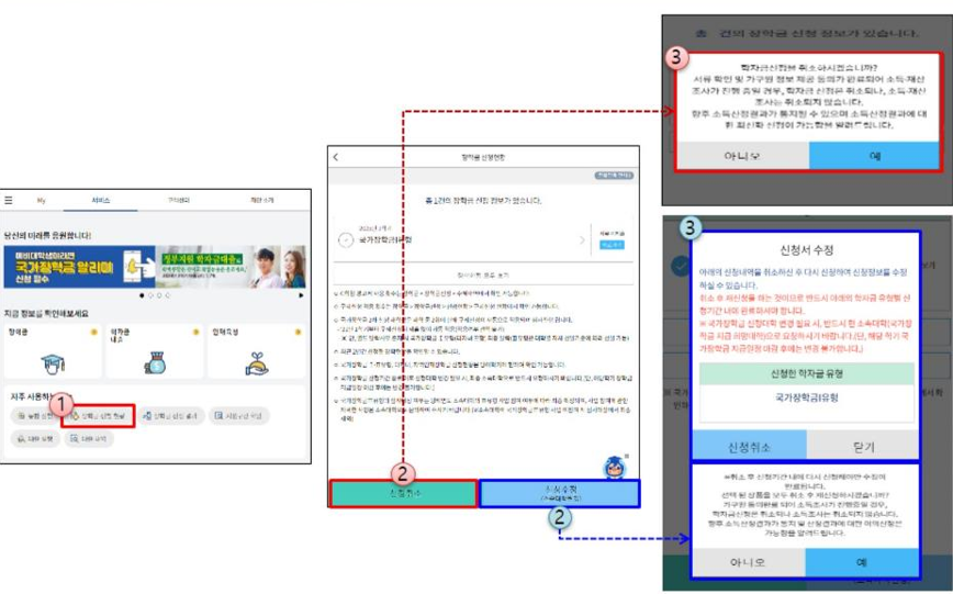 국가장학금 신청 취소 및 수정 안내